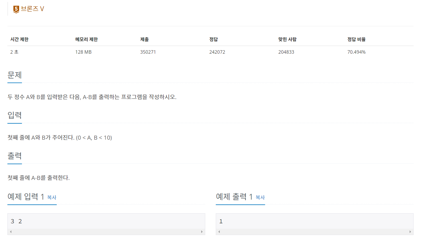 두 정수 A와 B를 입력받은 다음, A-B를 출력하는 프로그램을 작성하시오.
