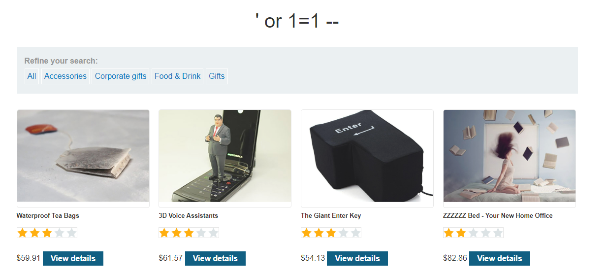This lab contains a SQL injection vulnerability in the product category filter. When the user selects a category, the application carries out a SQL query ...