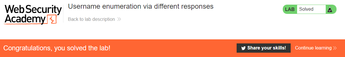 Lab: Username enumeration via different responses | Web Security Academy