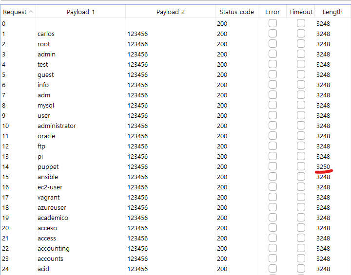 puppet / 123456으로 로그인해보면 로그인이 안된다.