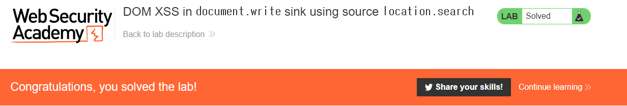 Lab: DOM XSS in document.write sink using source location.search | Web Security Academy
