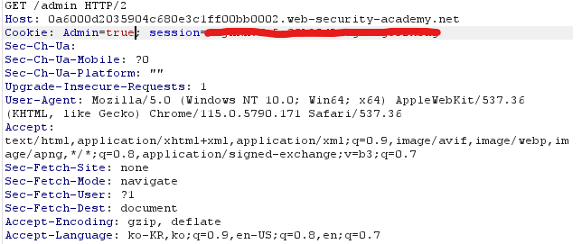 쿠키를 확인해보면 Admin 쿠키값이 false인 것을 확인할 수 있다.