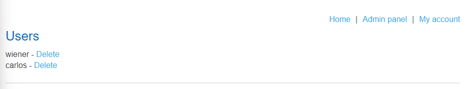 어드민 패널에 접속해서 carlos 계정을 삭제하면 문제가 풀린다.