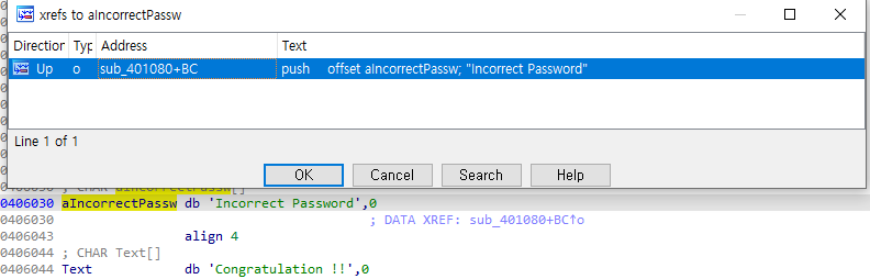 Incorrect Password 밑에 Congratulation !!이 있는 걸 보니