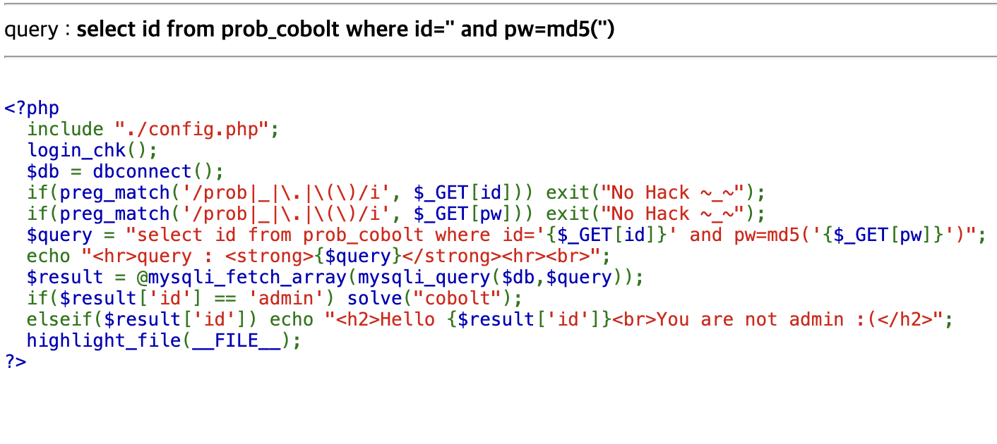 $query 부분이 조금 바뀌었다. pw 부분을 md5로 암호화한다.