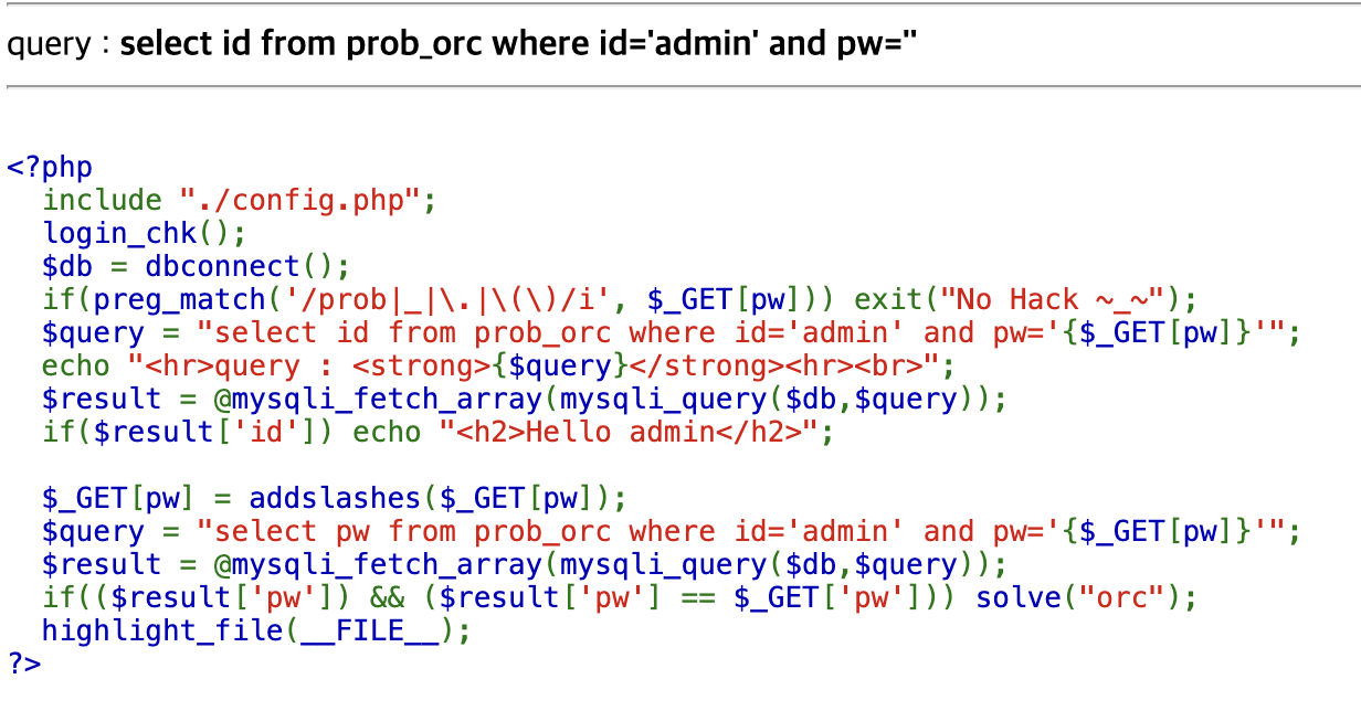 똑같은 쿼리를 실행시켜 결과 pw와 addslashes된 입력한 pw가 같을 시 문제가 풀린다.