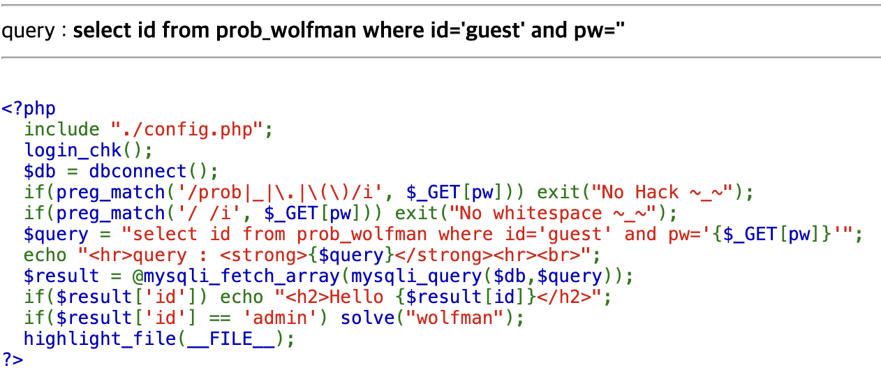 이런 식으로 쿼리를 짜면 띄워쓰기 없이 공격할 수 있고