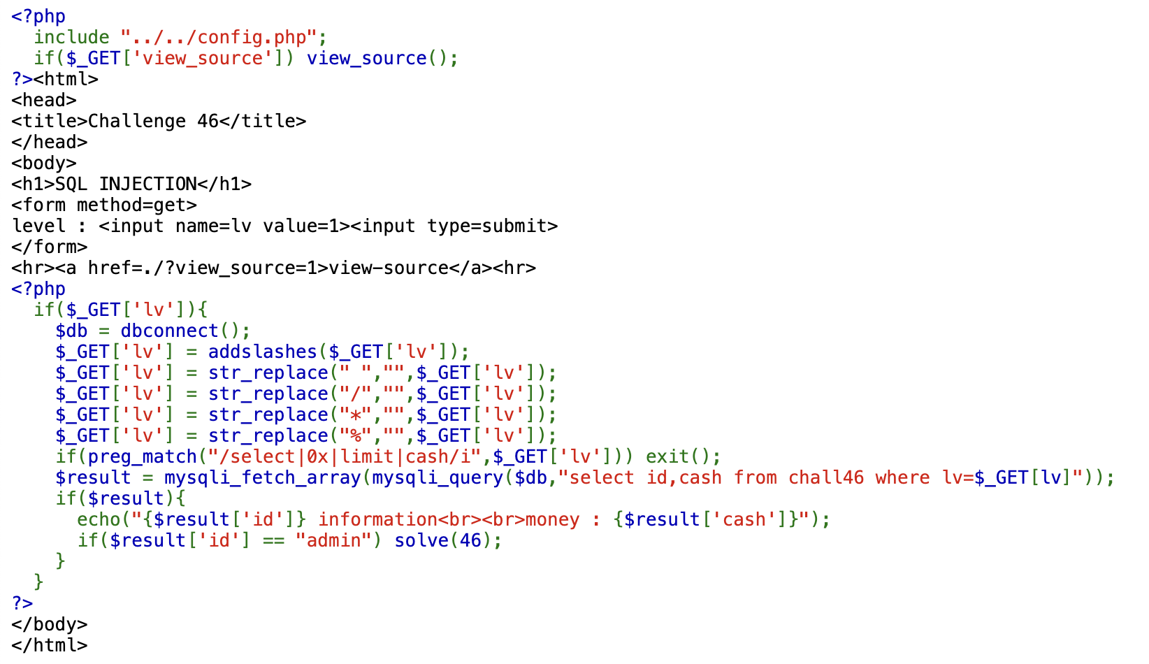소스코드를 보면 ' ', '/', '*', '%' 문자를 필터링하고