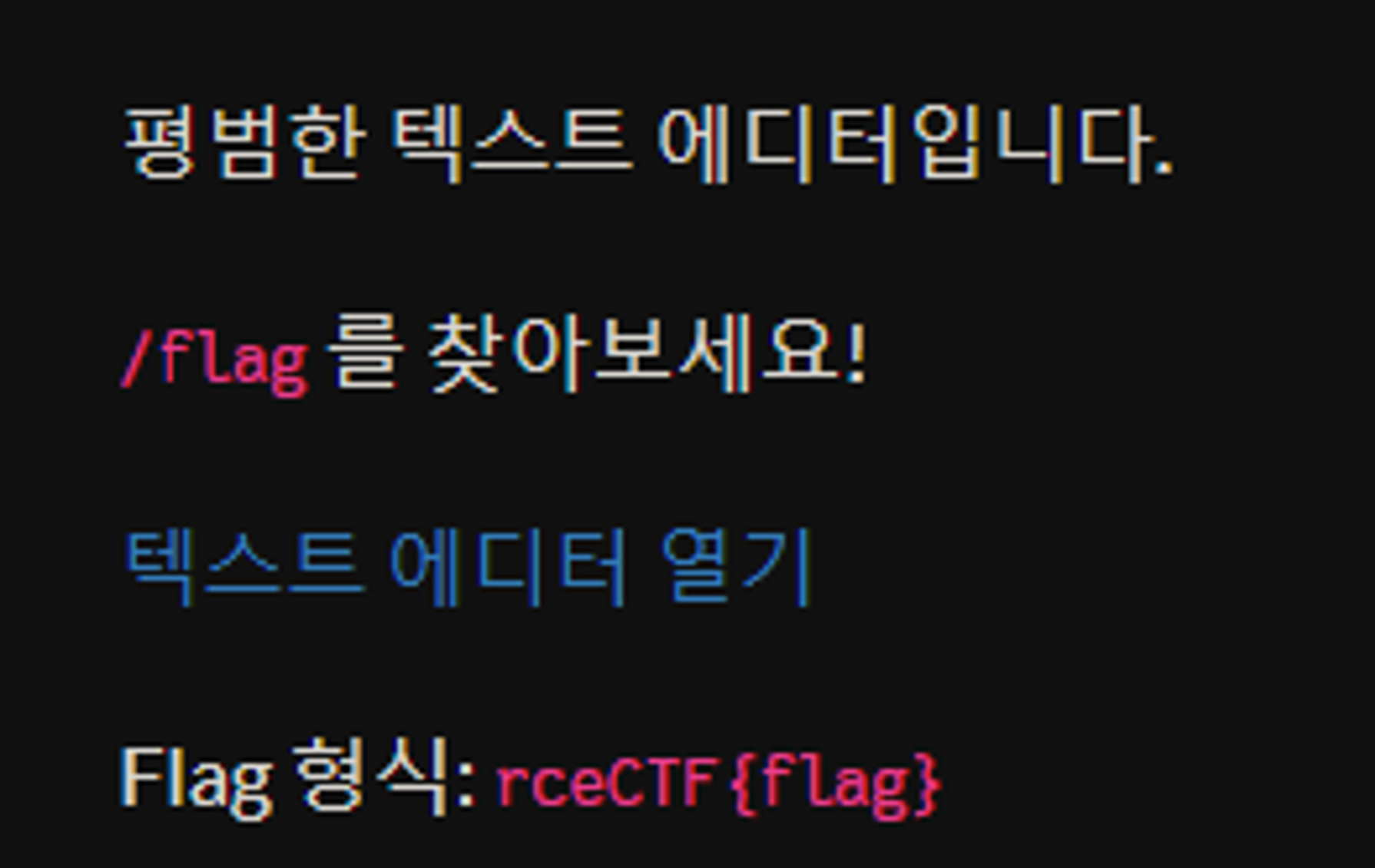 목차 반응형 !! 현재 문제는 경북소프트웨어고등학교의 CTF 사이트에서 출제된 문제입니다. 문제는 참고만 부탁드립니다. !! [문제] [풀이] 텍스트 에디터이다. /flag에 Flag 값이 있다고 한다. :e [파일명] 으로 flag 파일을 열어보자 Flag 값이 나오는 것을 확인할 수 있다. [FLAG] rceCTF{v1M_COMMAnd_masT3r} 반응형 공유하기 게시글 관리 blog.devhacks 저작자표시 비영리 변경금지 (새창열림) 목차 목차 닫기