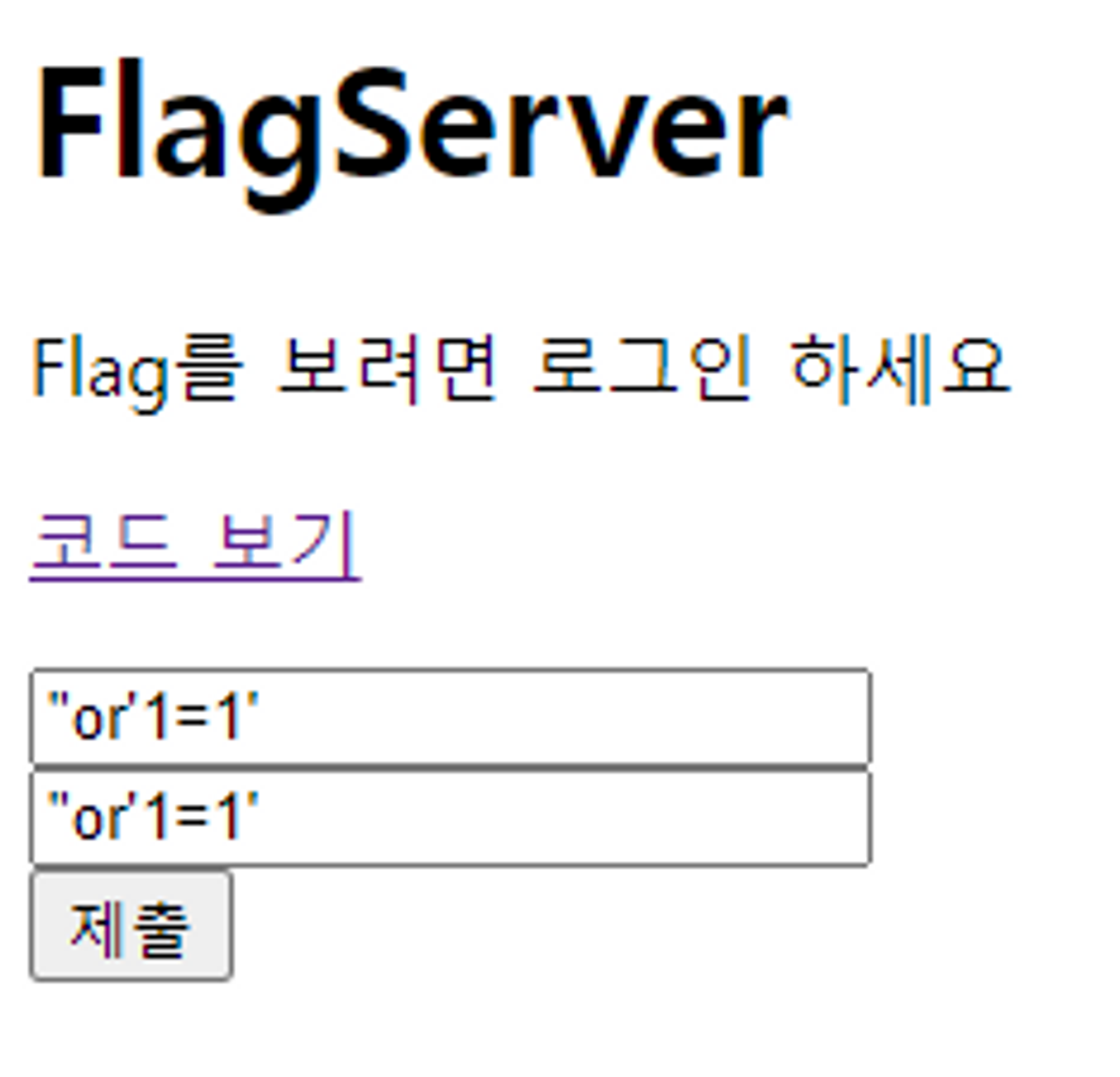 id 부분와 pw에 들어가는 부분은 SQL Injection 공격 기법에 맞게 제출하면 Flag 값을 확인할 수 있다.
