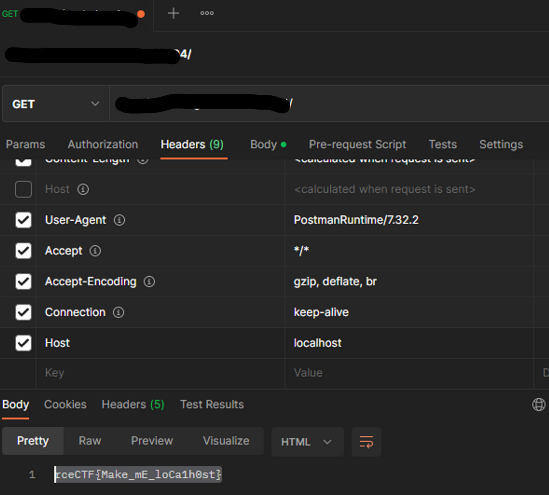 목차 반응형 !! 현재 문제는 경북소프트웨어고등학교의 CTF 사이트에서 출제된 문제입니다. 문제는 참고만 부탁드립니다. !! [문제] [풀이] localhost만 접속이 가능하다고 나온다. host 정보를 수정하기위해 저는 postman 프로그램을 이용했다. Host 주소를 localhost로 바꾼 후 패킷을 보내니 Flag 값이 나오는 걸 확인할 수 있다. [FLAG] rceCTF{Make_mE_loCa1h0st} 반응형 공유하기 게시글 관리 blog.devhacks 저작자표시 비영리 변경금지 (새창열림) 목차 목차 닫기