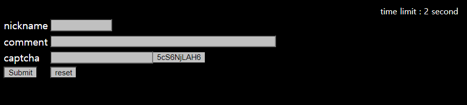 captcha 옆에있는 문자를 입력 후 Submit 하는 문제이다.