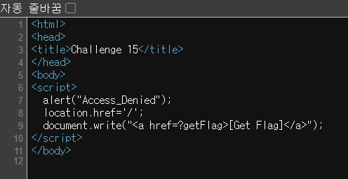 old-15번 문제를 클릭하면 Access_Denied라 뜨며 사이트에 접속을 거부한다.
