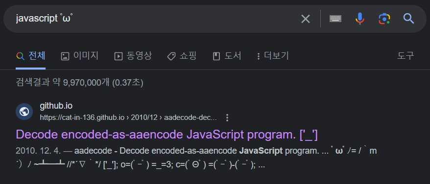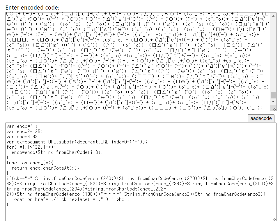 구글링해보니 aaencode 방식으로 인코딩 된 코드인 듯 하다.