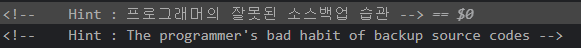 개발자 도구를 열어 소스코드에 힌트를 확인해보면