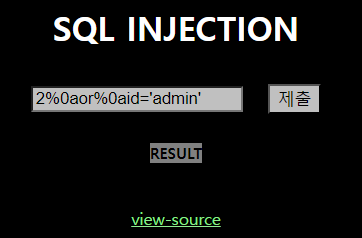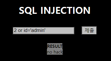 이런식으로 접근하면 "where id='guest' and no=2"에서 false로 리턴하지만, or id='admin' 으로 id가 'admin'으로 바뀌며