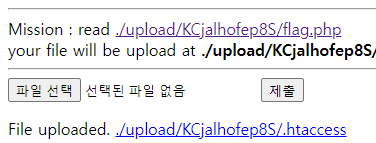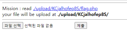 미션이 주어진다. ./upload/KCjalhofep8S/flag.php 를 읽으면 된다.