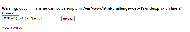 파일을 넣지 않고 업로드를 누르니 오류코드가 나온다.