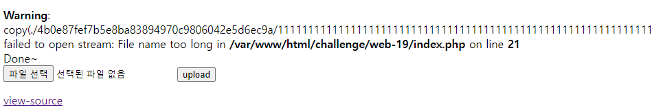 에러코드가 나오는걸 확인했으니 파일 이름 길이를 오버시켜 에러를 발생시킨다.