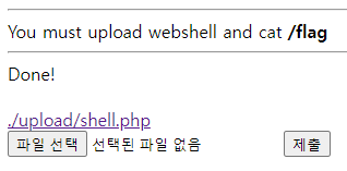 웹쉘을 업로드해서 /flag를 출력하면 Flag가 나오는 문제이다.